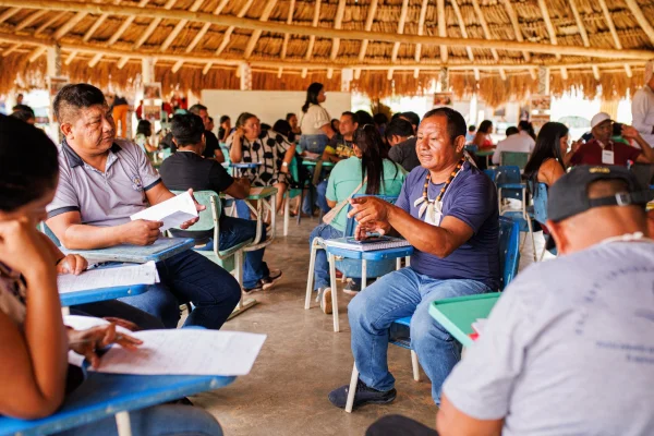 Todos os materiais priorizam autores indígenas da região amazônica. Nas oficinas presenciais, realizadas no próprio território, são abordadas mediação de leitura, gêneros literários, mapeamento do acervo cultural, registro de memórias e relação com o meio ambiente.