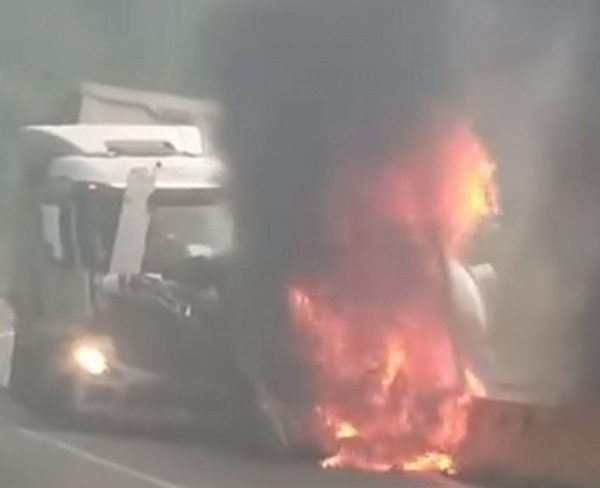 Um acidente envolvendo duas carretas interdita a Rodovia Presidente Dutra (BR-116), no trecho da Serra das Araras, em Piraí (RJ). A ocorrência aconteceu por volta das 15h, na altura do km 229, no sentido Rio de Janeiro. Um dos caminhões transportava combustível e o acidente provocou um incêndio.