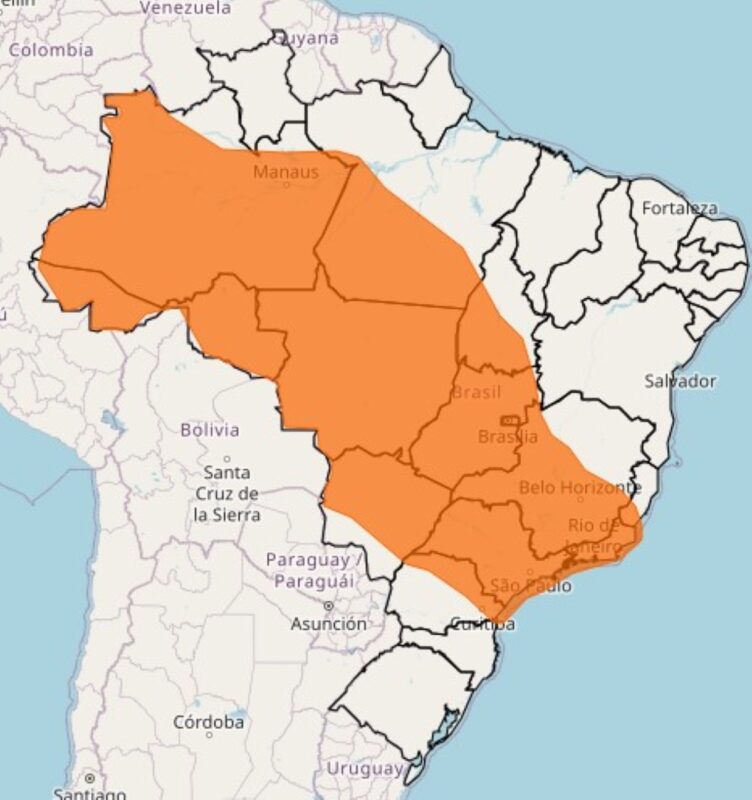 De acordo com o Inmet, o alerta laranja começou a valer às 9h15 desta terça-feira (16/12) e segue até as 7h de quarta-feira (17/12). Estão sob esse nível de severidade Goiás, Minas Gerais, Paraná, Tocantins, Mato Grosso, Acre, Espírito Santo, Pará, Mato Grosso do Sul, São Paulo, Rondônia, Amazonas, Rio de Janeiro, Roraima e Santa Catarina, além do Distrito Federal (veja aqui os municípios).