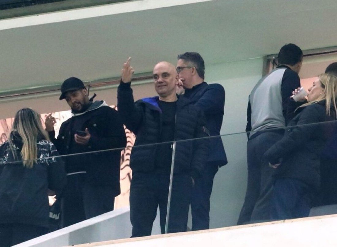 Horas depois de ter sido oficialmente incluído na lista de sanções do governo dos Estados Unidos com base na Lei Global Magnitsky, o ministro do Supremo Tribunal Federal (STF) Alexandre de Moraes foi flagrado assistindo a uma partida de futebol na Neo Química Arena, em São Paulo, válida pelas oitavas de final da Copa do Brasil.