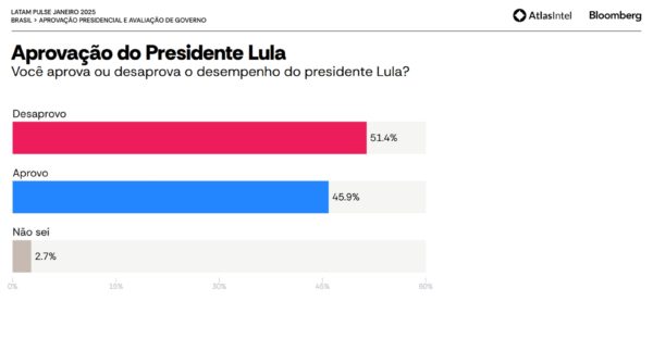 Pesquisa AtlasIntel divulgada nesta terça-feira (11/2) aponta um aumento na taxa de desaprovação do governo de Luiz Inácio Lula da Silva (PT). O indíce chegou a 51,4%, diante de 45,9% de aprovação e 2,7% que não souberam responder.