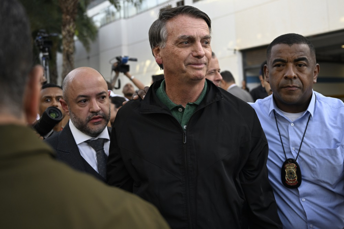 ‘Estou muito feliz de termos a oportunidade de esclarecer o que aconteceu’, afirmou a jornalistas, em Brasília, após prestar depoimento à Polícia Federal sobre um caso que envolve seu filho Eduardo Bolsonaro