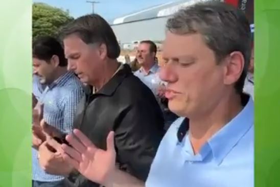 Tarcísio ainda repetiu o bordão de campanha do ex-presidente — “Brasil acima de tudo, Deus acima de todos” — e, após pedido de Bolsonaro, também imitou o tradicional “ihuuu” usado pelo ex-mandatário ao fim de seus discursos.