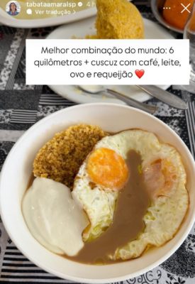 Em uma foto, compartilhada no Instagram, Tabata Amaral mostrou a refeição composta por cuscuz, leite, café, ovo e requeijão e gerou comentários.