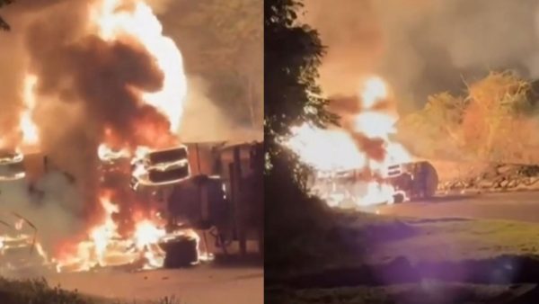 De acordo com o Corpo de Bombeiros, as chamas foram controladas, mas ainda existe risco de explosão porque parte da carga se espalhou pela pista. As equipes seguem atuando no local para evitar novos focos de incêndio.