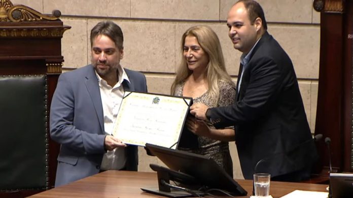 Foto: Reprodução/TV Câmara O jornalista e fundador do DIÁRIO DO RIO, Quintino Gomes Freire, foi homenageado, na manhã desta sexta-feira (29/08), no Plenário Teotônio Villela, na Câmara Municipal do Rio, com o Título {Leia mais }