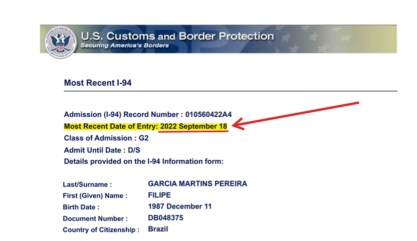 Órgão do Departamento de Segurança Interna dos Estados Unidos (EUA), a Alfândega e Proteção de Fronteiras informou que a viagem mais recente de Filipe Martins àquele país ocorreu em 18 de setembro de 2022, com destino a Nova York. Martins ocupou o cargo de assessor para Assuntos Internacionais da Presidência no governo anterior.