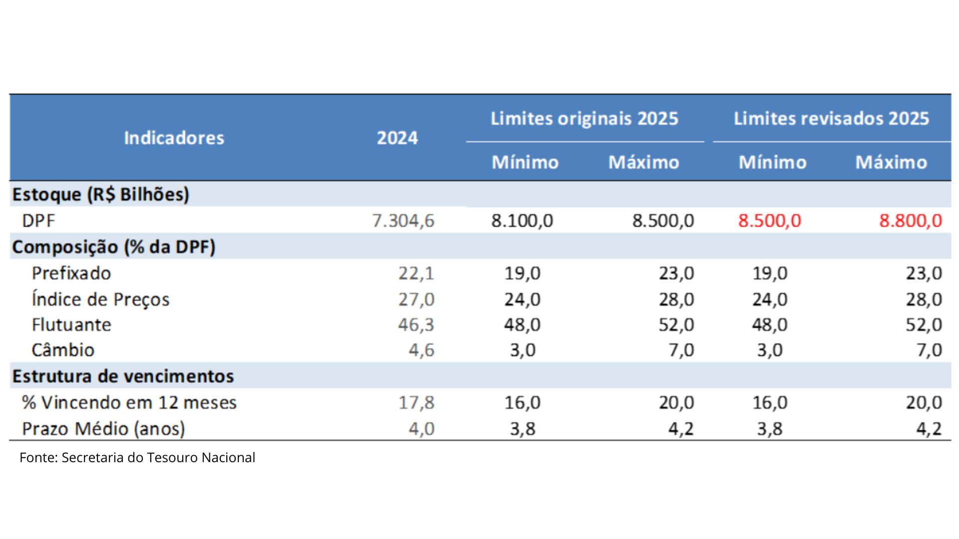 O volume da Dívida Pública Federal passou de R$ 8,122 trilhões em setembro para R$ 8,253 trilhões, registrando avanço de 1,62%. Esses valores permanecem ajustados ao intervalo previsto pelo Plano Anual de Financiamento (PAF), que estipula um teto entre R$ 8,1 trilhões e R$ 8,5 trilhões para o ano.