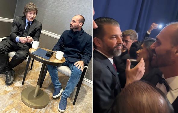 Ao lado de Michelle Bolsonaro, Eduardo também encontrou Javier Milei e a irmã do presidente libertário. Confira abaixo!