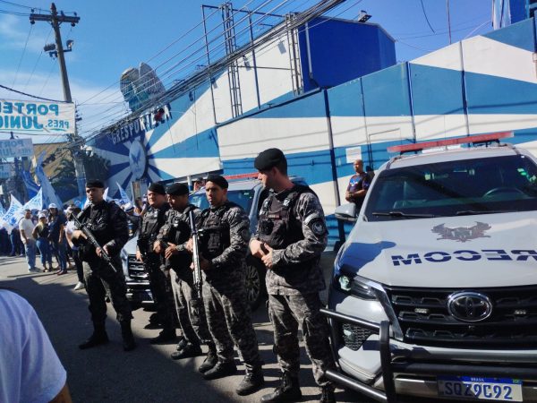 A Polícia Militar reforçou o policiamento no entorno da quadra da Portela, em Oswaldo Cruz, Zona Norte do Rio, neste domingo (25). A escola de samba escolhe seu novo presidente, a votação começou pela manhã e se estende até às 20h.