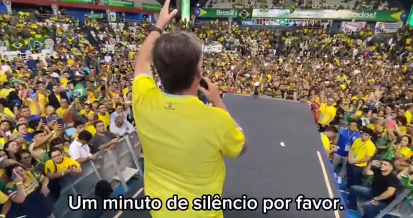O evento, que aconteceu na Redondel Amanda Teixeira, teve início às 20h e contou com a presença de diversos apoiadores do ex-presidente, vestindo as cores da bandeira do Brasil. Além dos discursos políticos, houve também um douto evangélico. Veja inferior o pedido de minuto de silêncio e clique AQUI para ver no Twitter (X) a fala na íntegra do ex-presidente.