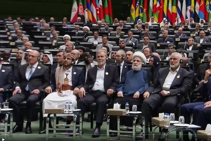 Estão na imagem, além de Alckmin, o porta-voz do grupo terrorista Houthi, Mohammed Abdulsalam; o líder do grupo terrorista Jihad Islâmica, Ziyad Al-Nakhalah; o general Naim Assem, vice-líder do Hezbollah, grupo terrorista com base no Líbano; e Ismail Haniyeh, líder do Hamas morto horas depois da posse de Pezeshkian, em um ataque de Israel em Teerã.