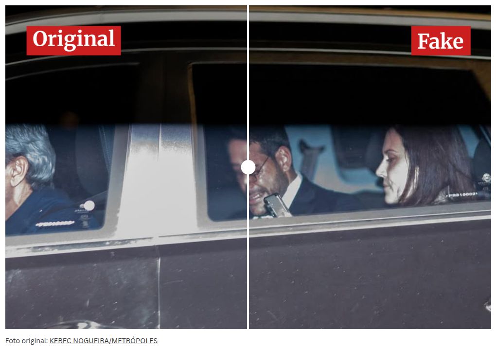 A foto falsa, no entanto, mostra Messias chorando dentro do veículo. A imagem circulou perfis na na internet, insinuando que ele teria essa reação por conversar com o presidente Luiz Inácio Lula da Silva (PT) depois do resultado do Congresso Nacional.