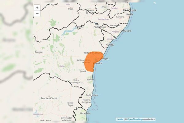 O Inmet destaca a previsão de chuvas para o Recôncavo Baiano, onde são esperados volumes de precipitações de até 100 milímetros (mm). A região está sob um alerta laranja justamente sobre acumulados de chuvas. O Inmet alerta que pode haver alagamentos, deslizamentos de encostas e transbordamentos de rios até as 23h59 desta quarta.