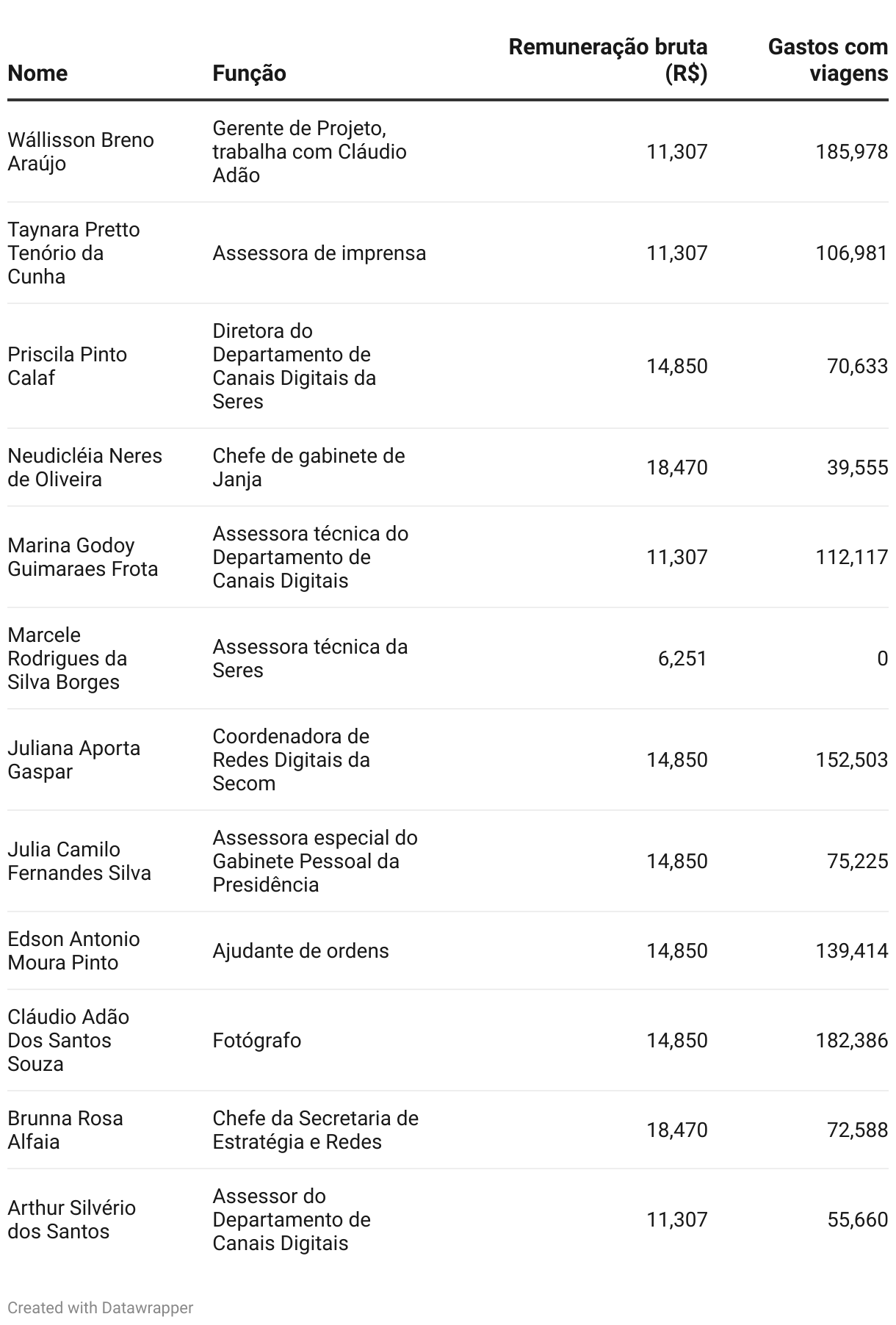 Além disso, esses servidores já gastaram R$ 1,2 milhão em viagens, desde o começo do terceiro mandato do presidente Luiz Inácio Lula da Silva. O grupo inclui assessora de imprensa, fotógrafos, especialistas em redes sociais e um militar como ajudante de ordens à disposição de primeira-dama.