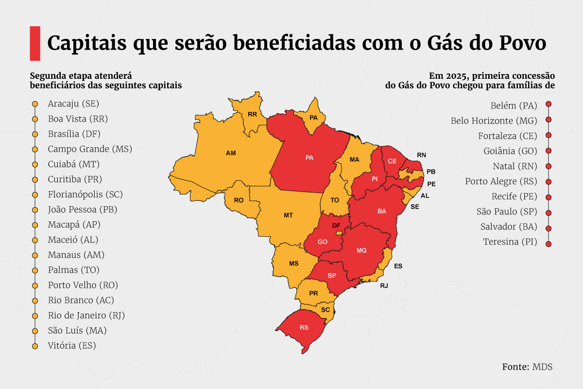 A expansão faz parte de um modelo adotado pelo governo para ampliar o acesso ao gás de cozinha e aliviar o orçamento de famílias inscritas no Cadastro Único com renda per capita mais baixa. Na primeira fase, o benefício já havia sido liberado em capitais como Salvador, São Paulo, Belo Horizonte e outras grandes cidades, beneficiando cerca de 1 milhão de famílias.