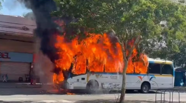 Um ônibus da Viação Futuro pegou fogo, na tarde desta sexta-feira (20), na Estrada de Jacarepaguá, Zona Oeste do Rio. O Corpo de Bombeiros foi acionado por volta das 13h para controlar as chamas. As informações são da TV Globo.