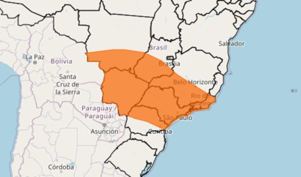 O grau de severidade do aviso, cor laranja, é o segundo mais forte na escala do Inmet. A tempestade deve afetar o sul do Mato Grosso, metade do Goiás, sul de Minas Gerais e norte do Paraná. Já os estados de Mato Grosso do Sul, São Paulo e Rio de Janeiro estão com todo o seu território sob aviso.