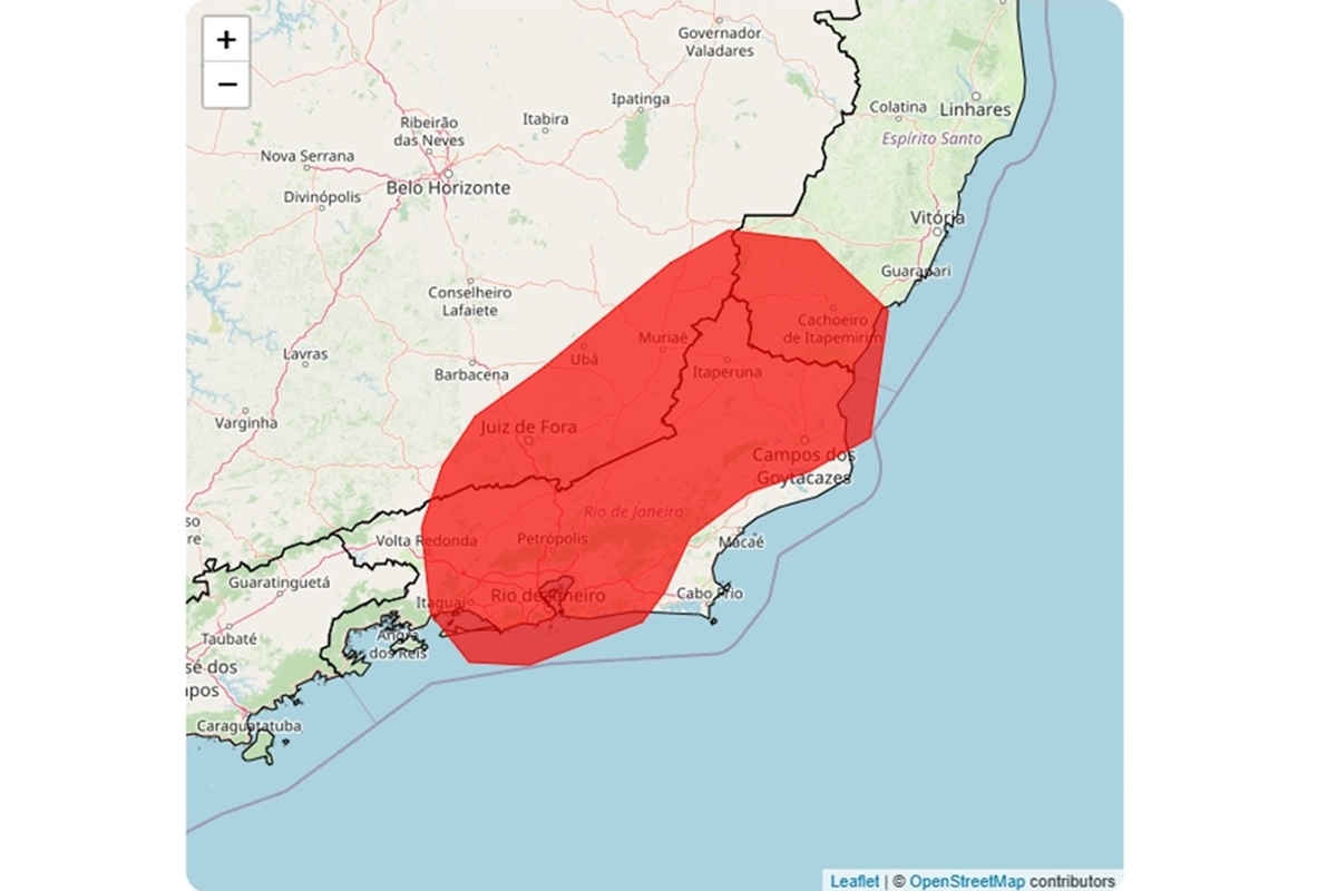 De acordo com o aviso do Inmet, as áreas que podem ser atingidas são as regiões sul e central do Espírito Santo; noroeste, centro, sul e norte do estado do Rio de Janeiro, além da região metropolitana da capital carioca e a baixada fluminense; e as regiões sul e sudeste de Minas Gerais. Confira a lista completa com os 193 municípios atingidos.