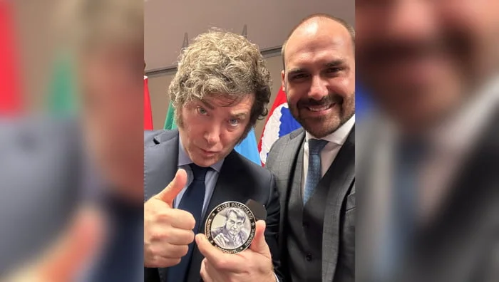 O presidente da Argentina, Javier Milei, ganhou a medalha “3is: imbrochável, imorrível e incomível” de Jair Bolsonaro, ex-presidente do Brasil, na manhã deste domingo, 7. Eles estiveram em uma agregação a portas fechadas com os governadores Tarcísio de Freitas (Republicanos-SP) e Jorginho Mello (PL-SC) e o parlamentário federalista Eduardo Bolsonaro (PL-SP).