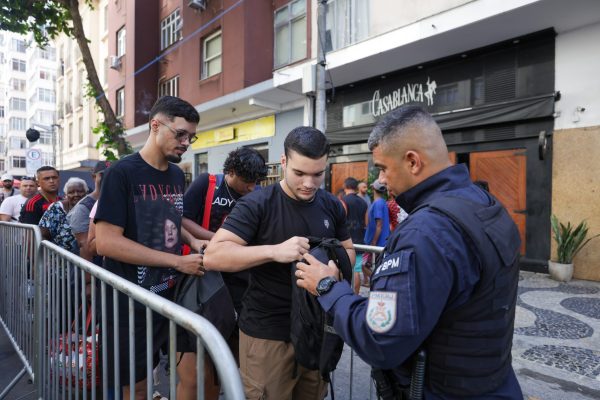 Ninguém entra na área do show da cantora Lady Gaga, na Praia de Copacabana, sem passar pela revista da Polícia Militar, neste sábado (03). Os policiais estão em 18 pontos de acesso à orla — e, para acelerar o processo, pedem que o público fique atento ao que pode e o que não pode levar.