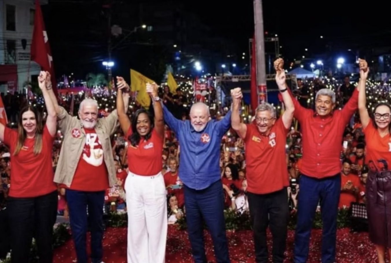 No palco, além de Lula, estavam também a primeira-dama, Rosângela Lula, conhecida como Janja. O governador da Bahia, Jerônimo Rodrigues (PT), e Geraldo Júnior, que foi candidato do partido e não obteve sucesso em Salvador, completaram a lista de autoridades presentes.