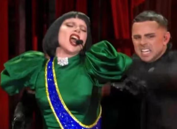 Durante apresentação na Praia de Copacabana, a cantora Lady Gaga surpreendeu ao trocar um vestido vermelho por uma roupa nas cores verde e amarela — e o gesto não passou despercebido por políticos da oposição.