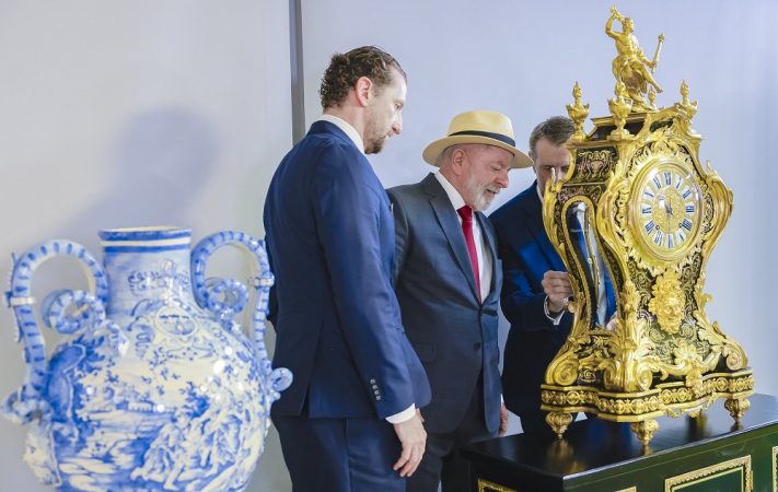 Em evento organizado pelo governo federal e realizado no Palácio do Planalto, o presidente Luiz Inácio Lula da Silva (PT) recebeu nesta quarta-feira (8) as obras que foram restauradas após os ataques que ocorreram no dia 8 de janeiro de 2023 nas sedes dos Três Poderes. As cerimônias de reintegração das peças marcam o segundo aniversário do episódio de vandalismo em Brasília. Entre as obras apresentadas, destaca-se um relógio que foi trazido ao Brasil por Dom João VI em 1808, além de uma ânfora.