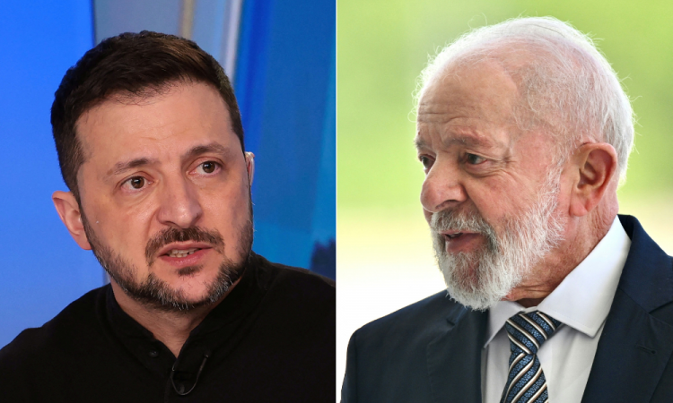 AFP Presidente ucraniano, Volodymyr Zelensk, e o presidente brasileiro, Luiz Inácio Lula da Silva, em montagem