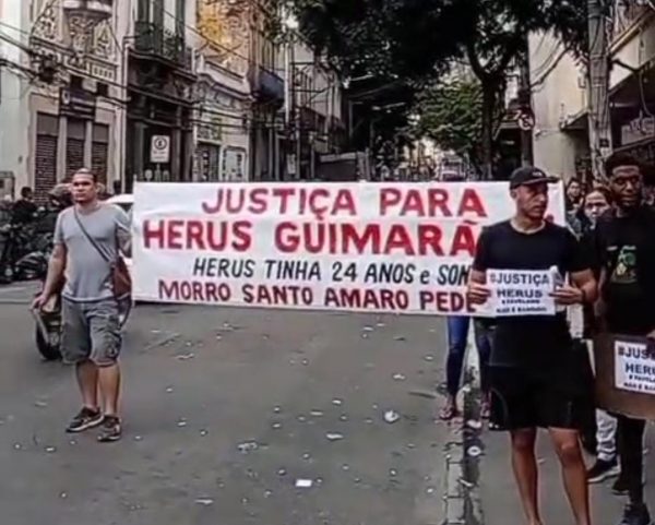 Moradores da favela Santo Amaro, no Catete, Zona Sul do Rio, fizeram uma manifestação, na tarde deste sábado (7), pedindo justiça pela morte do jovem Herus Guimarães Mendes, de 24 anos. Ele foi baleado durante uma festa junina, na noite de sexta-feira (6), no momento em que agentes do Batalhão de Operações Policiais Especiais (Bope) iniciaram uma operação no local.