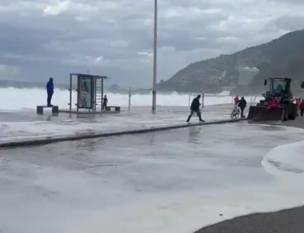 Por causa das fortes ondas, a Avenida Delfim Moreira chegou a ser interditada, mas foi liberada na manhã desta quinta-feira (31).