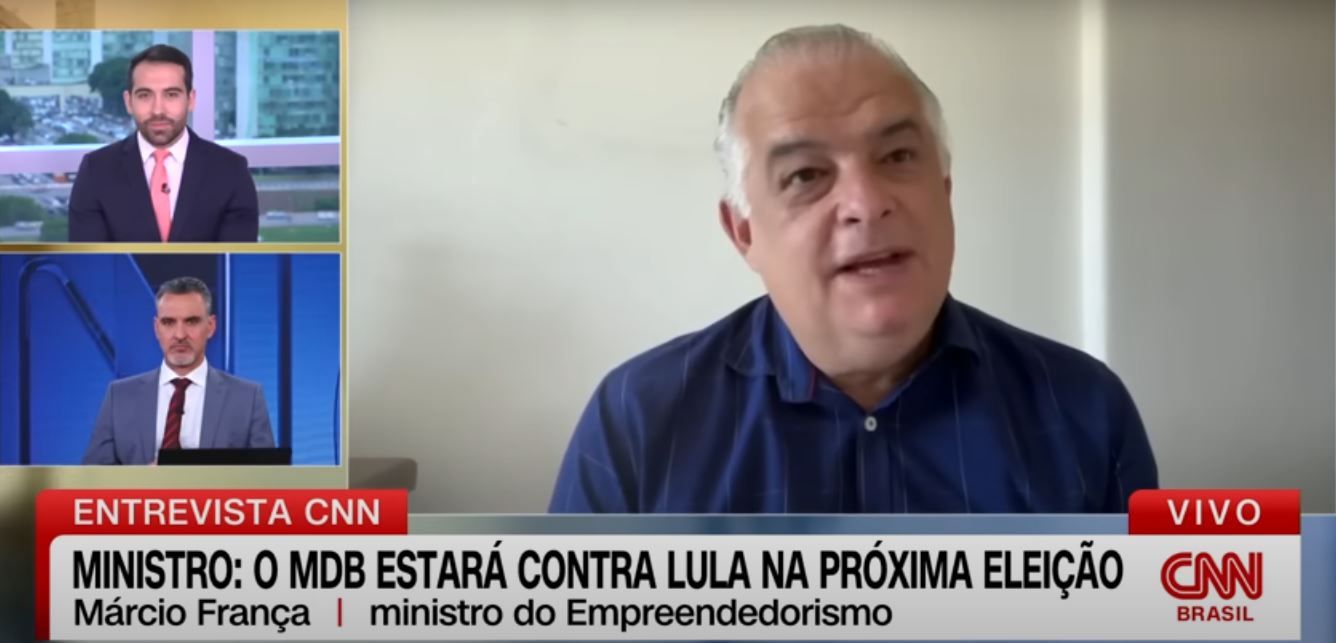 “Cachorro mordido por cobra tem medo até de salsicha. Se eu tivesse de criar uma nova relação, não criaria com o MDB”, disse o ministro. A fala remete a um período tenso da política brasileira, quando o MDB, então com Michel Temer, assumiu a Presidência após o impeachment de Dilma Rousseff (PT) em 2016. Veja abaixo! E mais: PGR aciona STF e pede suspensão de leis que autorizam atuação das bets no Brasil. Clique AQUI para ver. (Foto: reprodução vídeo; Fonte: Poder360; CNN)