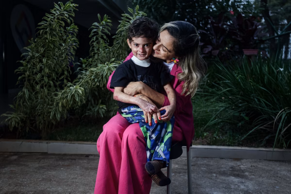 Anne Priscila e o filho Noah, diagnosticado com epidermólise bolhosa