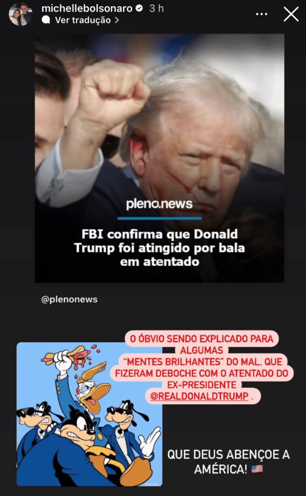 Observação de Michelle Bolsonaro a respeito de o Atentado contra Donald Trump