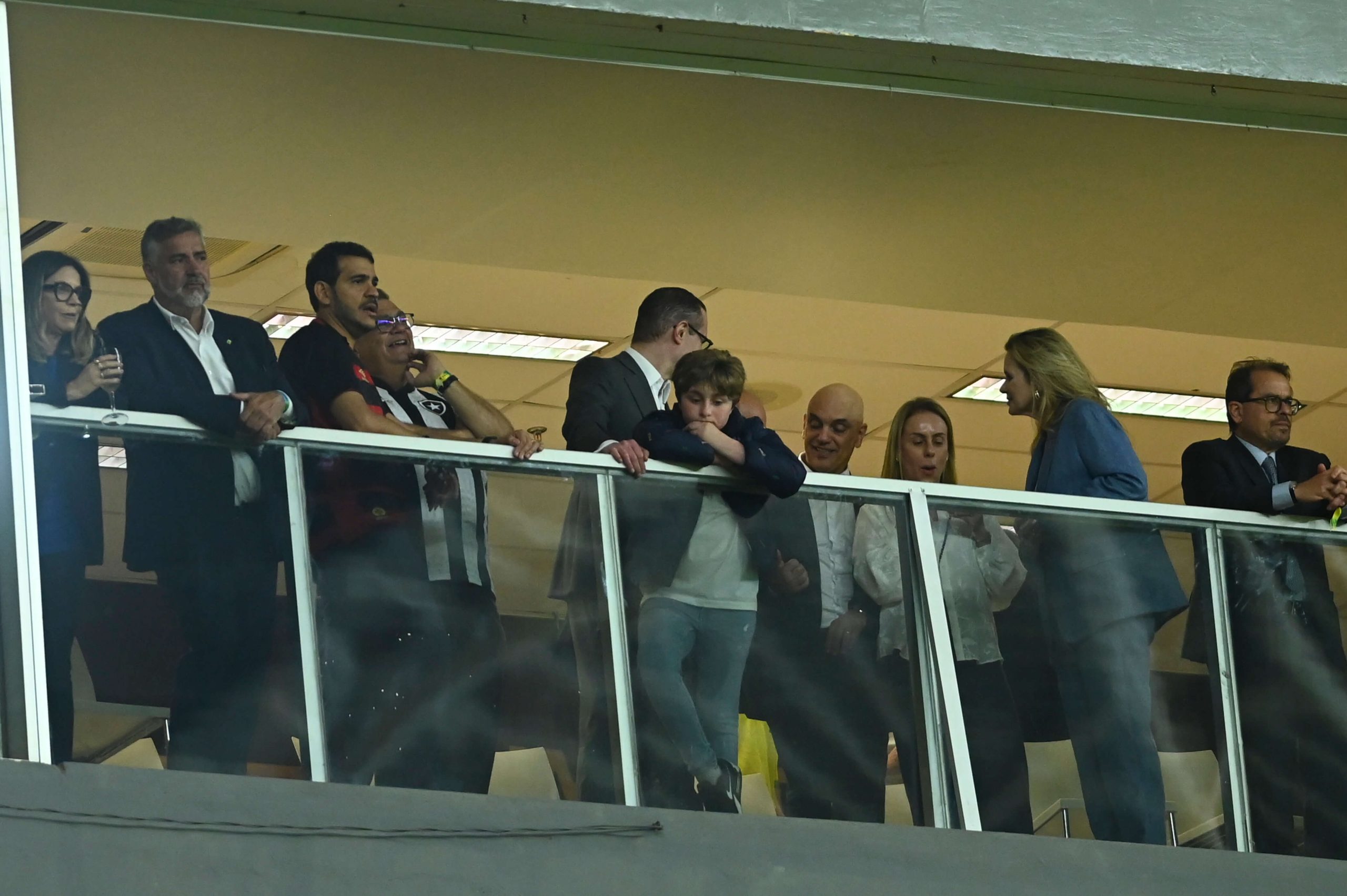 Também estava no camarote o advogado-geral da União, Jorge Messias, o chefe da Secom, Paulo Pimenta, o ministro Floriano de Azevedo Marques, do Tribunal Superior Eleitoral, além de familiares, como a mulher de Moraes, Viviane Barci.