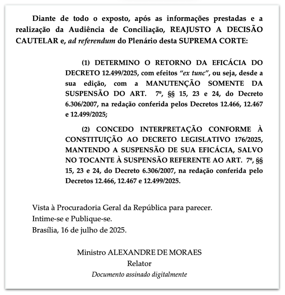 Na 3ª feira (15.jul), o ministro da Fazenda, Fernando Haddad, havia sinalizado que a decisão de Moraes viria com um bloqueio só sobre a incidência do imposto sobre o risco sacado.