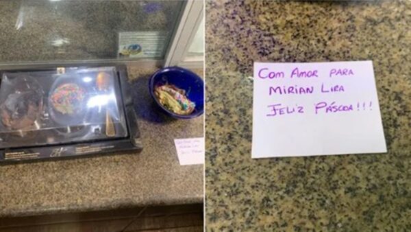 De acordo com o depoimento do pai da criança, o doce foi entregue por um motoboy na noite de quarta-feira (16/4) na residência da família, acompanhado de um bilhete que dizia: “Com amor, para Mirian Lira. Feliz Páscoa”.