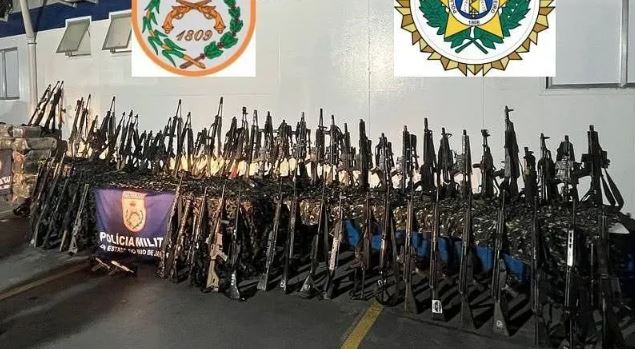 O armamento, segundo as autoridades, foi utilizado nos confrontos contra os cerca de 2.500 policiais que participaram da ação. Todo o material passará por perícia técnica, e os investigadores agora buscam rastrear a origem das armas e identificar os responsáveis pelo fornecimento ao crime organizado. (Foto: reprodução; Fonte: InfoMoney)