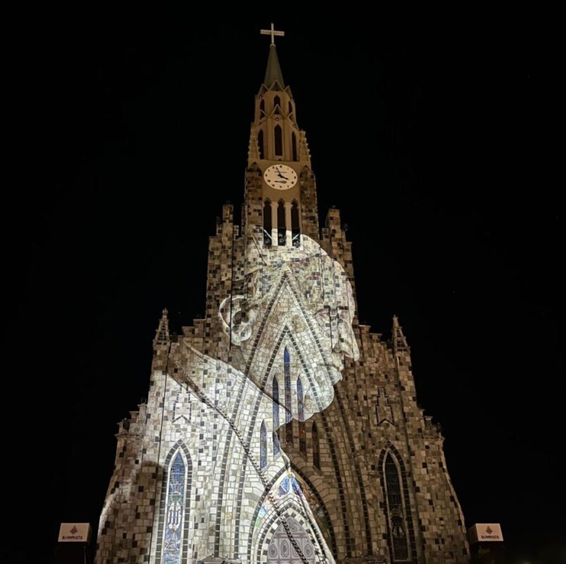 Papa é homenageado com projeção na Catedral de Pedra, em Canela