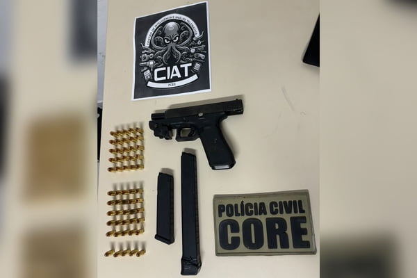 No local em que o acusado foi preso, os policiais apreenderam uma pistola e um caderno com anotações do tráfico de drogas. As informações apresentadas no caderno encontrado teriam saído de presídios.