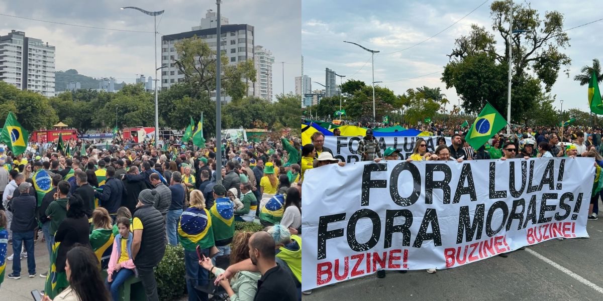 Centenas de pessoas participaram neste domingo (3) de uma manifestação na Avenida Beira Rio, em Itajaí (SC), em apoio ao ex-presidente Jair Bolsonaro (PL) e em defesa de pautas como liberdade de expressão, anistia aos presos do 8 de janeiro e críticas ao Supremo Tribunal Federal (STF).