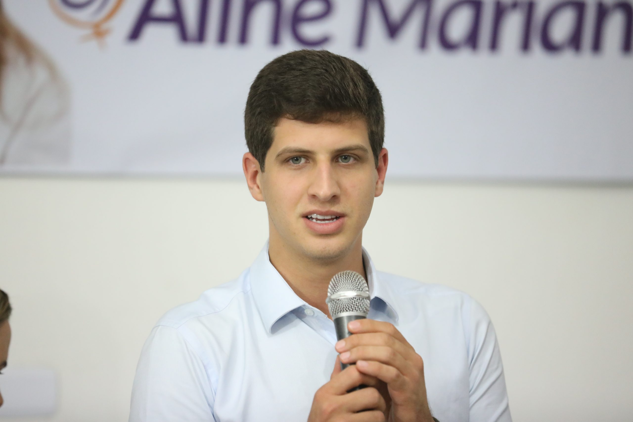 João Campos anunciou Victor Marques (PCdoB) como vice-prefeito em sua placa para tentar a reeleição em 2024.