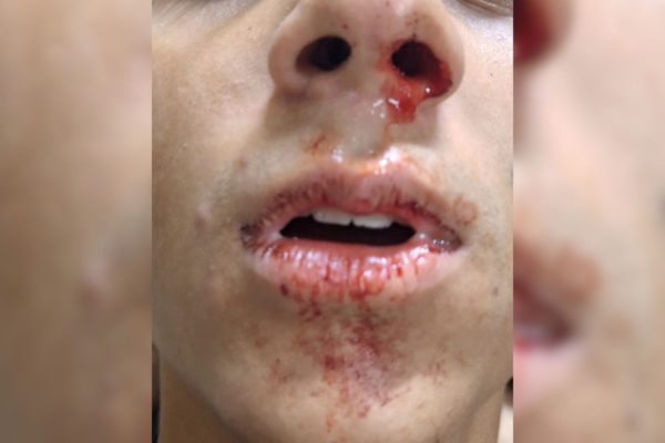 Entretanto, ela relata que, passados 15 minutos, o filho a interfonou da portaria. “A frase dele foi: ‘Mãe, aquele homem que bateu em mim uma vez me bateu de novo. Ele perguntou quem tinha chamado o filho dele para brincar e eu falei que ninguém tinha chamado, aí ele bateu na gente’. Eu me desesperei e peguei o elavador para descer. Até então eu não sabia a gravidade”, afirma a mãe.