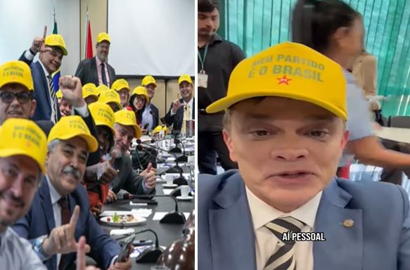 O item, nas cores verde e amarela, tradicionalmente associadas à direita brasileira, foi exibido durante uma reunião na Câmara dos Deputados, com a presença do presidente da legenda, Edinho da Silva. A escolha visual marca uma tentativa de ressignificação simbólica e política de elementos patrióticos.