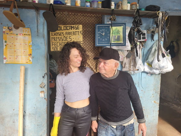 “A gente precisa ensinar as pessoas a fazerem o trabalho. Uma pessoa fica cuidando do morador. Depois vamos agindo, cada um por uma peça, com um trabalho cuidadoso que respeita o processo pelo qual eles estão passando”, explica o voluntário Lucas Fontes, que também participou da limpeza da sapataria.