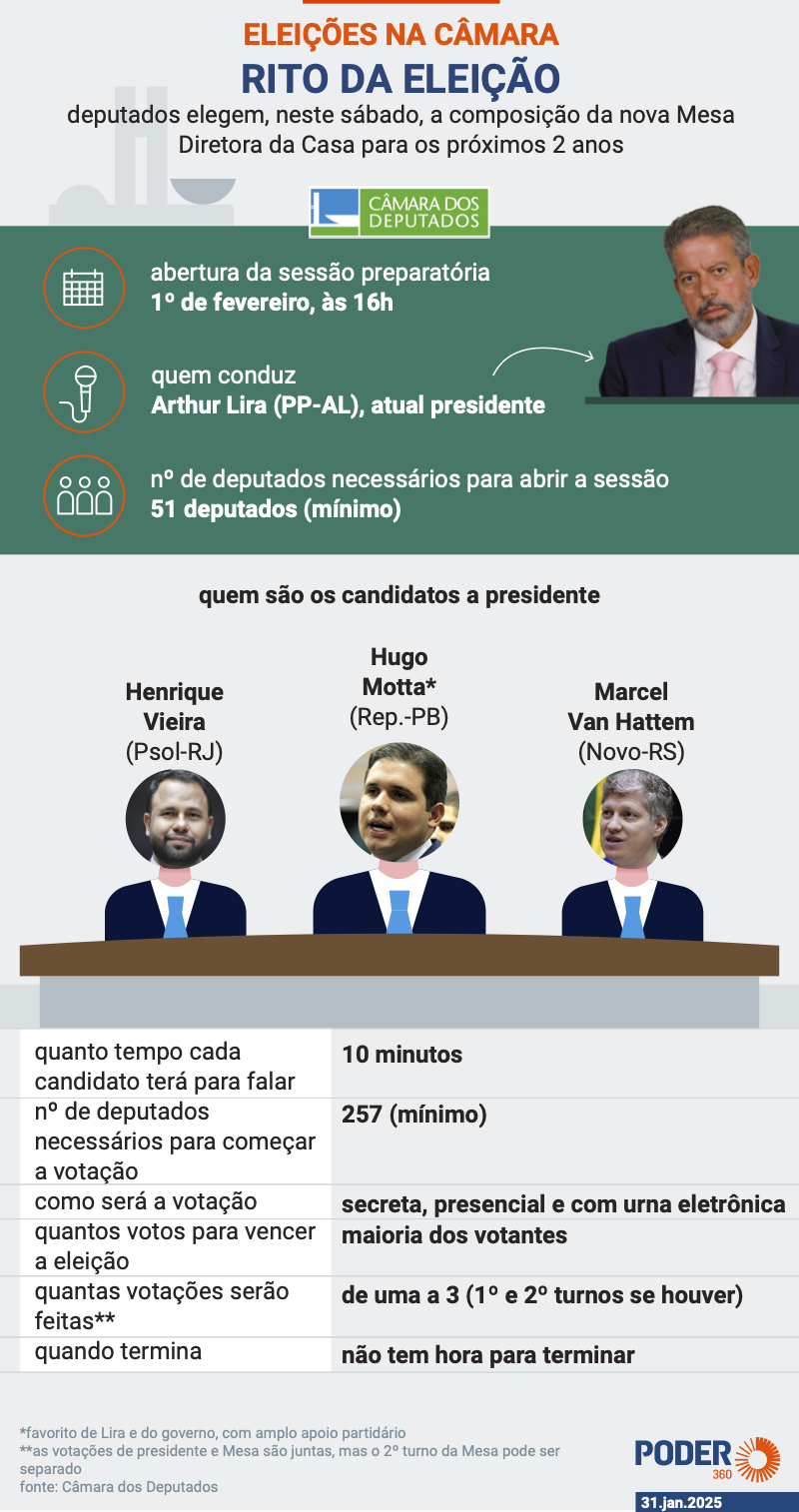 Motta conta com o apoio de 18 partidos que, juntos, reúnem 495 dos 513 deputados da Casa. A eleição está marcada para as 16h. O deputado Marcel van Hattem (Novo-RS) e o pastor Henrique Vieira (Psol-RJ) também são candidatos, mas suas vitórias são improváveis.