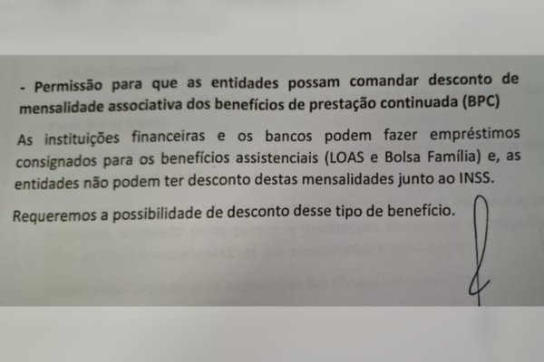 Uma das demandas era para o sindicato receber autorização para descontar mensalidades de beneficiários do programa Bolsa Família e do Benefício de Prestação Continuada (BPC), previsto na Lei Orgânica da Assistência Social (LOAS), para idosos e pessoas com deficiência. Ambos são pagos pelo INSS. Diferentemente dos aposentados, quem recebe os programas assistenciais não podem ter descontos de mensalidade associativa na folha de pagamento. Apesar do pleito, essa autorização não prosperou.
