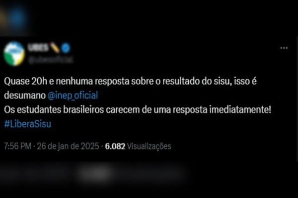 Com a demora na divulgação dos resultados do Sistema de Seleção Unificada (Sisu) 2025, previsto para este domingo (26/1), internautas reagem com memes e indignação nas redes socias. Até a noite de domingo, os resultados não haviam saído. O Ministério da Educação (MEC) não se manifestou sobre o assunto.