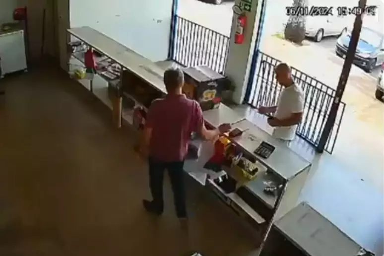 Depois de efetuar o pagamento, ele deixou o estabelecimento, onde havia uma caixa de fogos de artifício sobre o balcão.