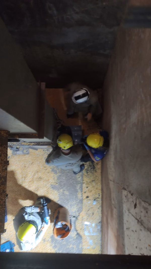 Os bombeiros acessaram o fosso do elevador com o auxílio de uma escada portátil e constataram que a vítima estava encarcerada entre a esteira e o conjunto de engrenagens da estrutura. O jovem já não apresentava sinais vitais.